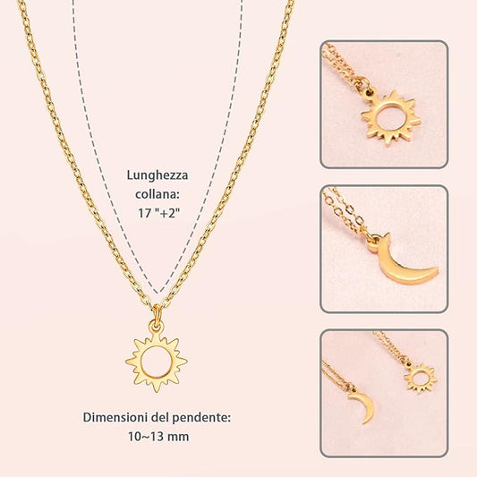 SUNSH 2-Piece Sun & Moon Necklace Set